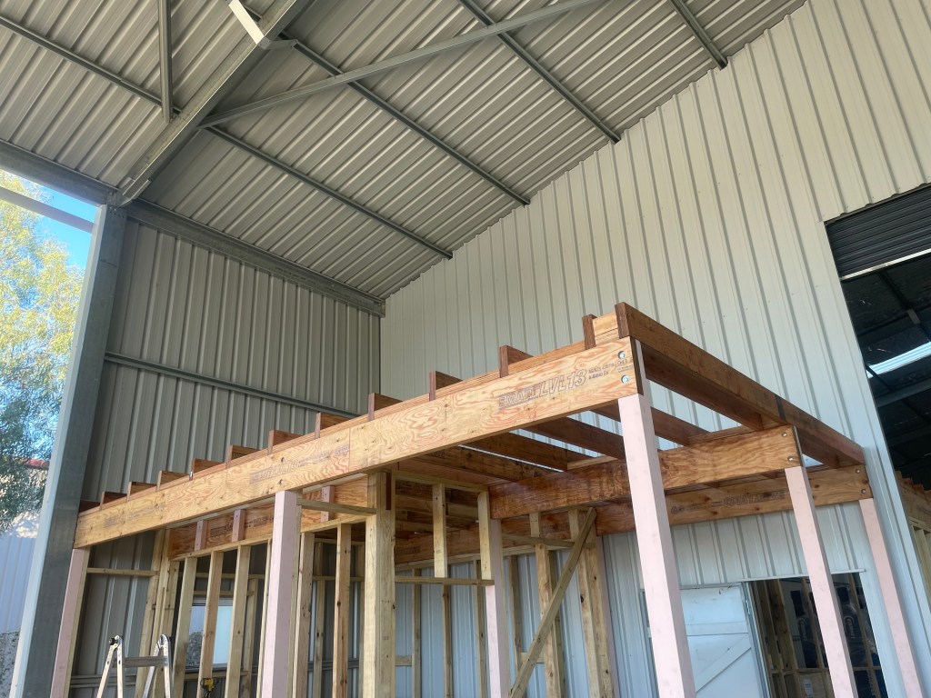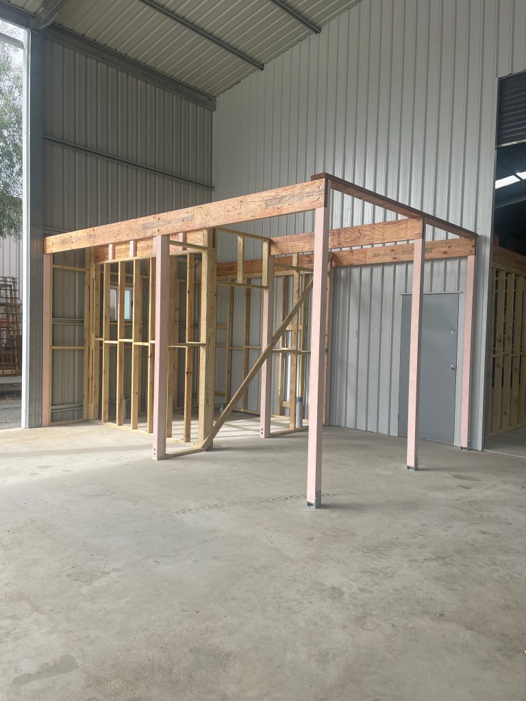 Timber framing, ceiling system installation, partition rooms, doors, hardware, internal lining and detailed finish work + parking bays installation.