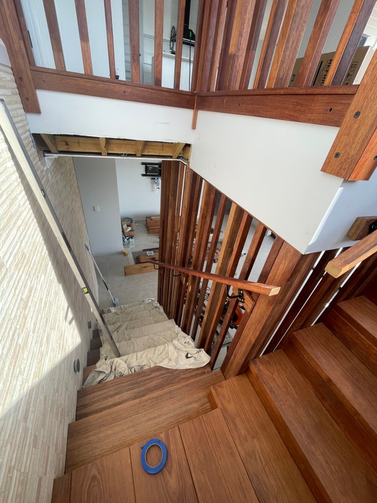 Wall and roof framing, load-bearing upgrades, cladding, deck installation, door and window sets, interior fit-off, skirting, architraves, multiple staircases and detailed finishing work.